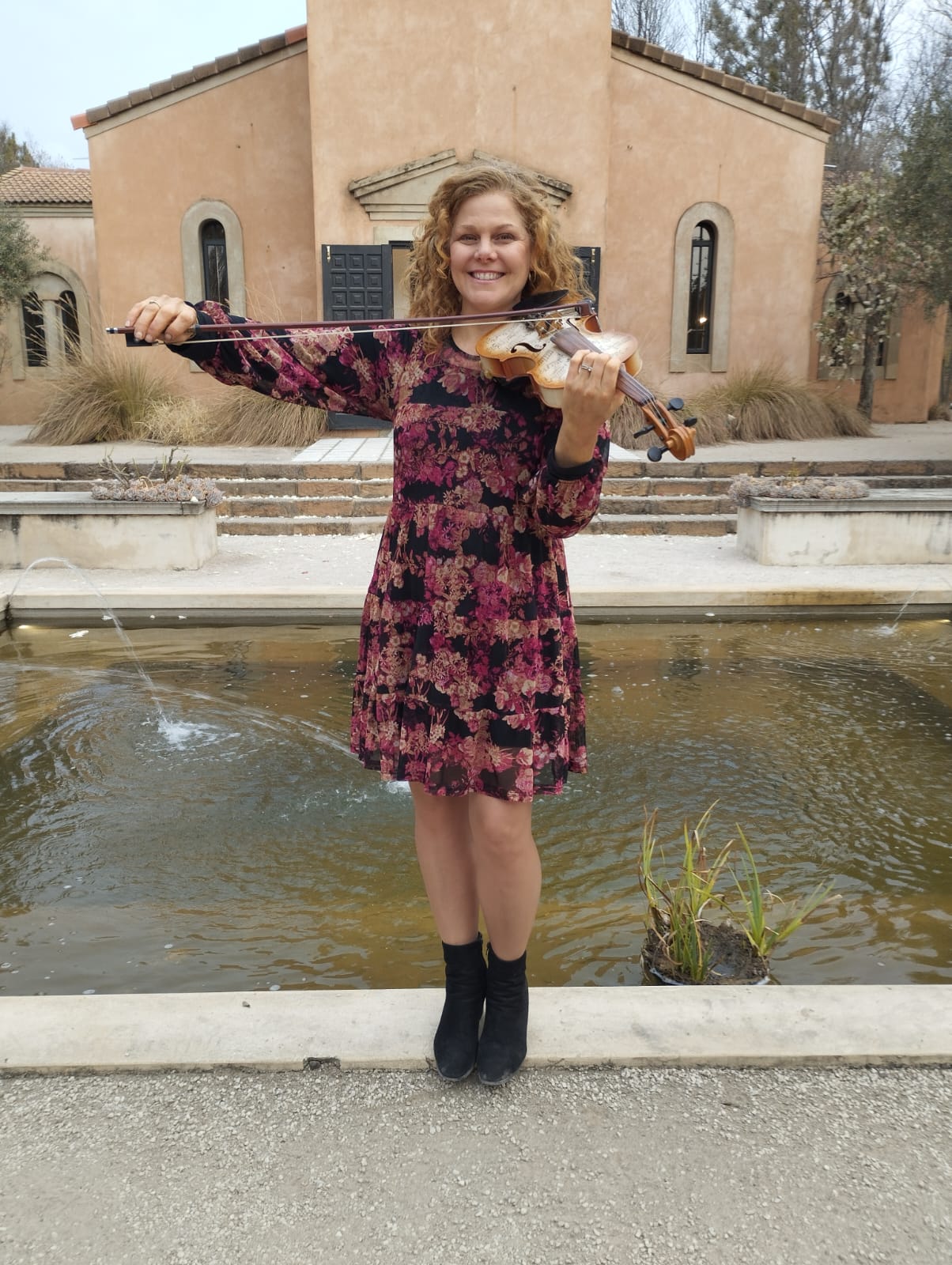 Entertaining guests on violin as the first few drops of Spring began falling at this wedding at Avianto.
