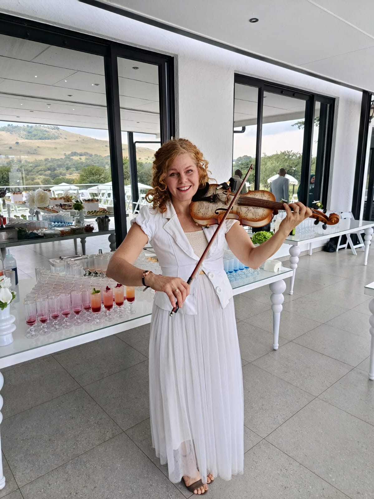 Larger-than-Life White Violinist’s dress with Light Projection